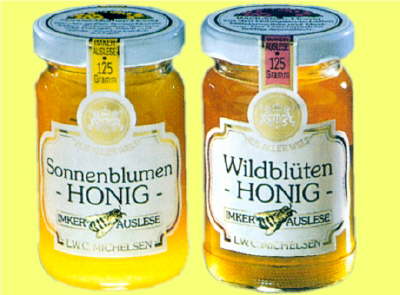 Sonnenblumen-Honig 125gWeich und cremig, goldgelbArt.-Nr. 941028Preis 1,70 EURWildblütenhonig 125gKräftig aromatischArt.-Nr. 941030Preis 1,70 EUR