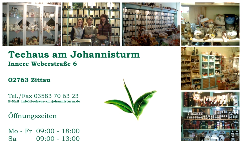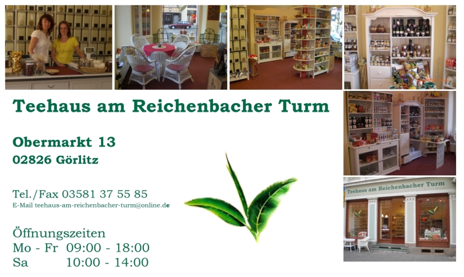 [Teehaus] [Teehaus am Reichenbacher Turm] [Tee-Geschichte] [Tee-Lexikon] [Tips & Tricks] [Tee-Rezepte] [Teekarte] [Service] [Teegenuss in Zittau] [Tee-Geschirr] [Tee-Zubehör] [Tee-Dosen] [Süsses zum Tee] [Gesundheit und Tee] [Wissenswertes über Tee] [Schauwerkstatt Oybin] [Impressum]