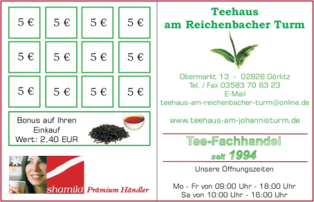 |  | In unserem Fachgeschäft erhalten Sie selbstverständlich aus unserem Angebot von Tee, Teezubehör und Teegeschirr, auch vielfältige Präsente zu allen erdenklichen Anlässen. Teesträuße, Präsentkörbe und  andere, Geschenkideen aus einer Kombination von Tee und Teezubehör werden grundsätzlich von unserem Fachpersonal selbst zusammengestellt. Diese enthalten ausser Tee, z.B. verschiedene Honige, Kandiszucker, Teegebäck und Schokoladenvarianten. Auch Teegeschirr und Zubehör wird verarbeitet. Gern fertigen wir Ihnen auch Präsente nach Ihren persönlichen Wünschen und Vorstellungen.  Präsentbestellungen in grösseren Mengen bitten wir rechtzeitig vorzunehmen. Nur mit einem entsprechenden Zeitvorlauf können wir Ihre Wünsche termingerecht erfüllen und haben die erforderlichen Waren vorrätig. Unternehmen bestellen zu jahreszeitbedingten Anlässen gern kleinere Aufmerksamkeiten für ihre Kollegen oder auch umfangreichere Präsente für die Belegschaft. Gerade in der Adventszeit fertigen wir mitunter mehrere hundert Präsente an. |