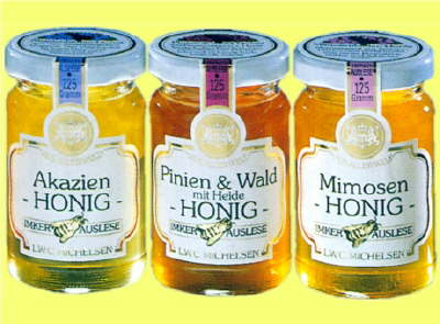 Akazien-Honig 125gMild und lieblich, ideal zum süssen des TeesArt.-Nr. 941033Preis 1,70 EURPinie mit Heide-HonigWürzig, kraftvoll, harzig herbArt.-Nr. 941034Preis 1,70 EURMimosen-HonigMild und lieblichArt.-Nr. 941035Preis 1,70 EUR